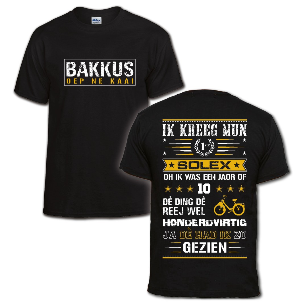 Het nummer waar ze eigenlijk altijd aan verbonden blijven. 'Bakkus oep ne kaai'. Met op de achterzijde de openingswoorden van dit volkslied.In diverse maten van S t/m XXXL